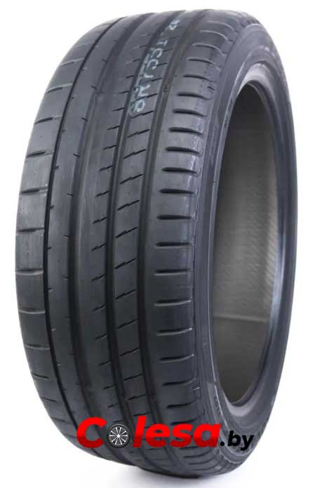 Сбалансированность ходовых качеств шины в значительной степени обеспечивается оптимизированным профилем рабочей части протектора. Он придает контактному пятну практически прямоугольную форму с округлыми углами, что существенно увеличивает сцепные характеристики, снижает сопротивление качению, повышает устойчивость к абразивному износу, особенно при поворотах. При этом состав, содержащий двуокись кремния и специальные полимеры, обеспечивает отменную цепкость на мокром покрытии и противодействует износу.