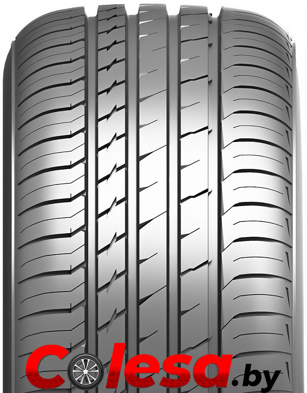 Протектор шины выполнен в модном сегодня асимметричном дизайне. Он разделен на несколько участков, каждый из которых обеспечивает определенные эксплуатационные свойства. Зачастую протекторные элементы взаимодействуют друг с другом, что приводит к значительному улучшению некоторых характеристик. В качестве примера можно привести продольное ребро и плечевую зону с внешней стороны протектора. Оба элемента имеют жесткую и устойчивую к поперечным ускорениям конструкцию, что придает шине стабильность, устойчивость на любой скорости и при маневрировании, а также повышает точность управления автомобилем. А протекторные элементы, расположенные ближе к внутренней стороне обеспечивают продольные тягово-сцепные свойства.