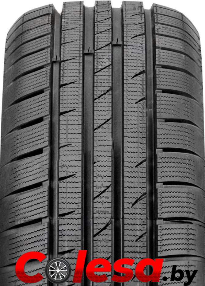 Центральная часть асимметричного протектора состоит из двух сплошных ребер с глубокими продольными каналами между ними. Это способствует поддержанию курсовой устойчивости и быстрому отводу воды и талого снега из зоны контакта. Насечки на ребрах и густая ламелизация улучшают тяговые свойства.