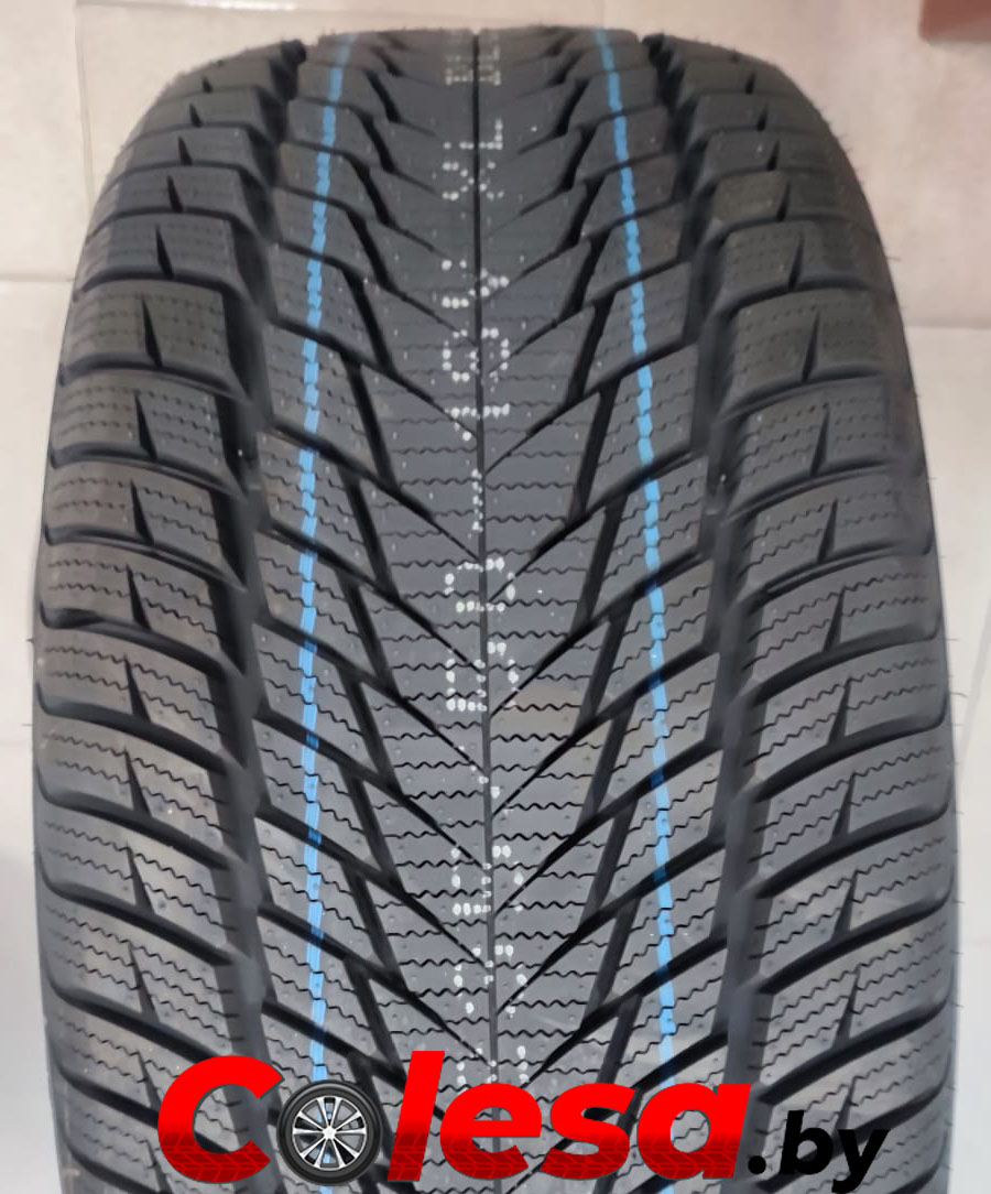 Протектор имеет цельное центральное ребро, которое обеспечивает быструю реакцию на повороты руля. Ребра в средней зоне с пилообразными краями помогают поддерживать устойчивость на высоких скоростях. Широкие блоки в плечевой зоне улучшают тяговые характеристики и предотвращают крены при маневрировании. Зигзагообразные ламели, покрывающие все элементы протектора, усиливают кромочный эффект, что повышает прочность контакта на обледенелой дороге и обеспечивает безопасное вождение.