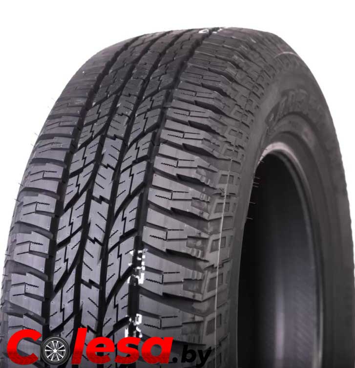 Протекторный рисунок шины Yokohama Geolandar A/T G015 подходит для эксплуатации на любом покрытии. Упомянутые ламели обеспечивают сцепление на скользких зимних дорогах. А многочисленные поперечные дренажные канавки не только осушают зону контакта, но и за счет своего расположения обеспечивают хорошие продольные тягово-сцепные свойства на грунтовых покрытиях. Устойчивое поведение на асфальтированных дорогах достигается большими размерами зоны контакта. Они достигаются массивностью и большим количеством протекторных блоков.