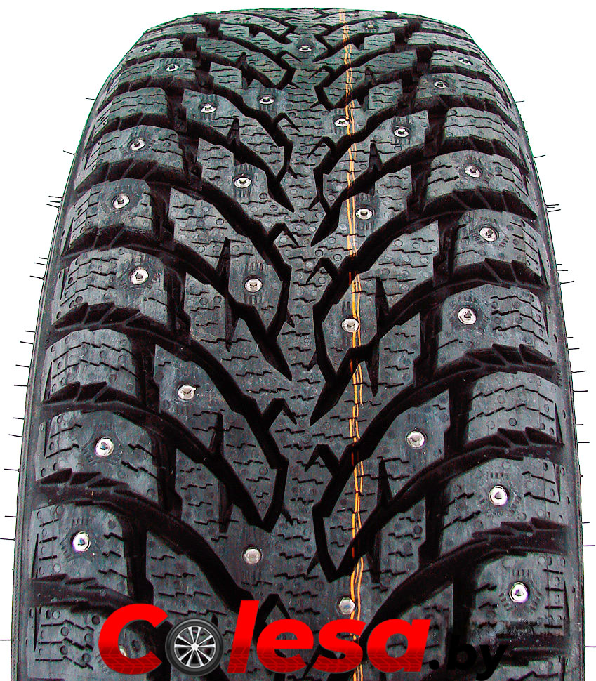 Для снижения воздействия шипами на саму шину была применена усовершенствованная технология Eco Stud 9, которая заключается в расположении под каждым шипом (а их тут 190) воздушной подушки. Кроме того, наличие скошенных граней сердцевины каждого шипа позволяет оптимизировать нагрузку на него, что положительно сказывается и на общем воздействии на шину. Таким образом, достигается длительный срок службы ошиповки с минимальной потерей ее элементов в процессе эксплуатации.