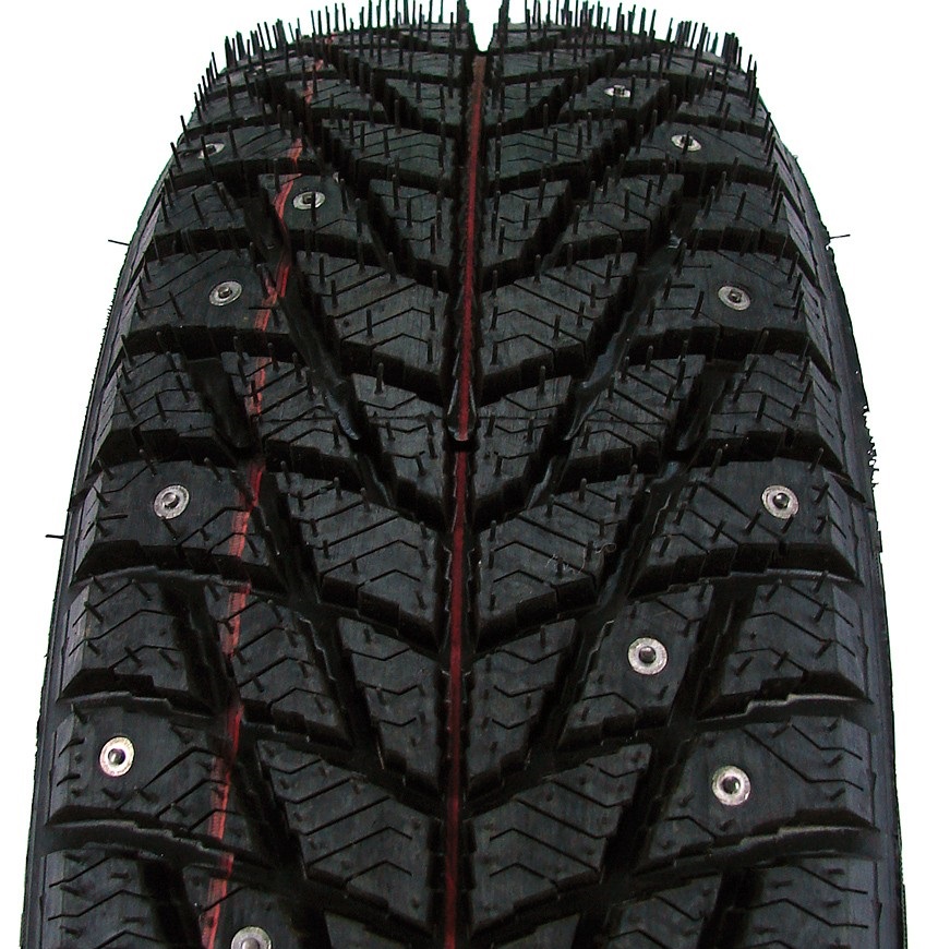 — двухслойный протектор: верхний слой сохраняет эластичность при достаточно низких температурах, а нижний — обеспечивает блокировку шипа и способствует длительному сроку эксплуатации шипов благодаря плотной текстуре;