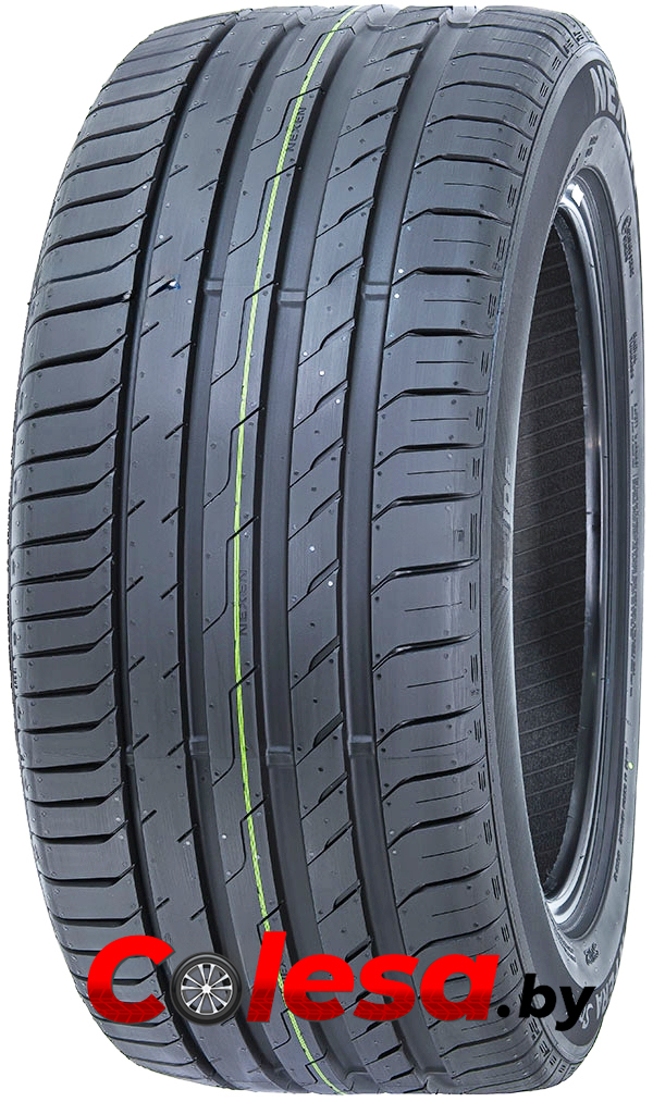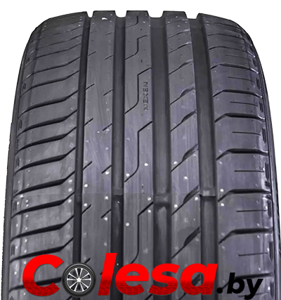 Протекторный рисунок выполнен в несимметричном дизайне, который делит его на две части — внутреннюю и наружную. Это придает шине сбалансированные ходовые свойства без ущерба ни одному из них. Еще одной особенностью рисунка является увеличенный объем продольных канавок и многочисленность дренажных элементов по краям протектора. Такое решение практически исключает риск формирования в пятне контакта сплошной пленки воды, что позволяет контролировать автомобиль даже при сильном дожде.