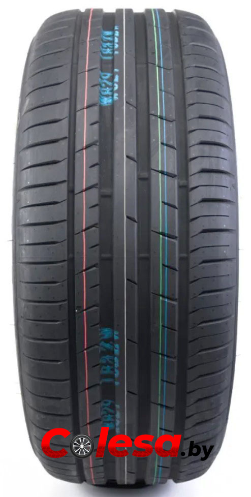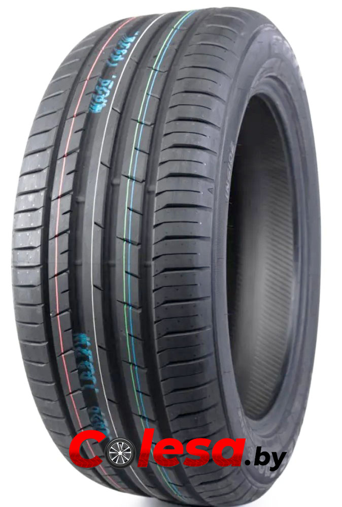 Протекторный рисунок содержит большое количество поперечных кромок. Расположенные в двух из трех ребер центральной части элементы направлены навстречу друг другу. Наряду с увеличенной длиной поперечных кромок в плечевых зонах это существенно сокращает протяженность тормозного пути, независимо от дорожных условий. При этом их наклон в таком режиме движения повышает курсовую устойчивость.