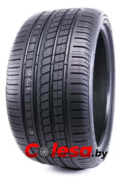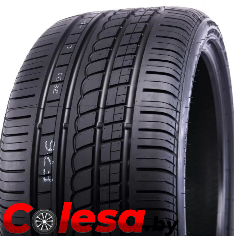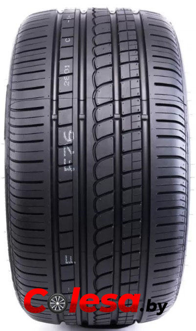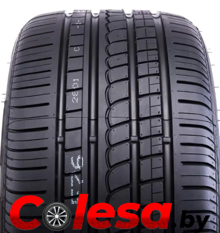 Симметричный направленный рисунок протектора шины выполнен в V-образном дизайне, что немного не соответствует современной моде на асимметричные рисунки летних легковых шин. В остальном в данной шине применены все новейшие разработки этого ведущего итальянского шинного производителя. В частности, в самом центре протектора расположилось двойное продольное ребро, имеющее цельную и очень жесткую конструкцию. За счет этого решения удалось обеспечить шине превосходную курсовую устойчивость и четкость откликов на повороты руля. Два соседних ребра разделены диагональными каналами на отдельные блоки, благодаря чему шина демонстрирует отточенные реакции на подруливание.