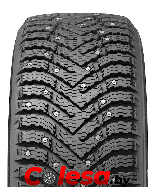 В настоящее время шина комплектуется шипом Spike-Cor. Производитель позиционирует это решение, как промежуточное, планируя позднее использовать новые элементы, разработка которых пока еще не завершена. Но при этом схема их расположения полностью обновлена. Одновременно в пятне контакта находится до десяти шипов, формирующих соответствующее количество продольных «цепей противоскольжения». Результатом такого решения является существенное улучшение сцепных свойств на обледенелом покрытии – до уровня, который демонстрируется аналогами от ведущих европейских брендов.