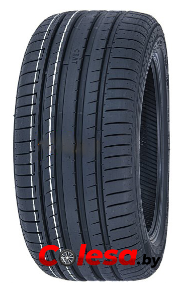 Протектор выполнен в классическом стиле для этого сегмента: три продольных ребра в центре и крупные блоки по краям. Центральные ребра отличаются высокой прочностью к деформациям, что позволяет шине быстро и точно реагировать на действия водителя, улучшая курсовую устойчивость и облегчая контроль на высокой скорости. Особое расположение элементов протектора снижает вероятность возникновения резонансных шумов и вибраций, благодаря чему внутри салона становится тише, особенно на шероховатом асфальте.